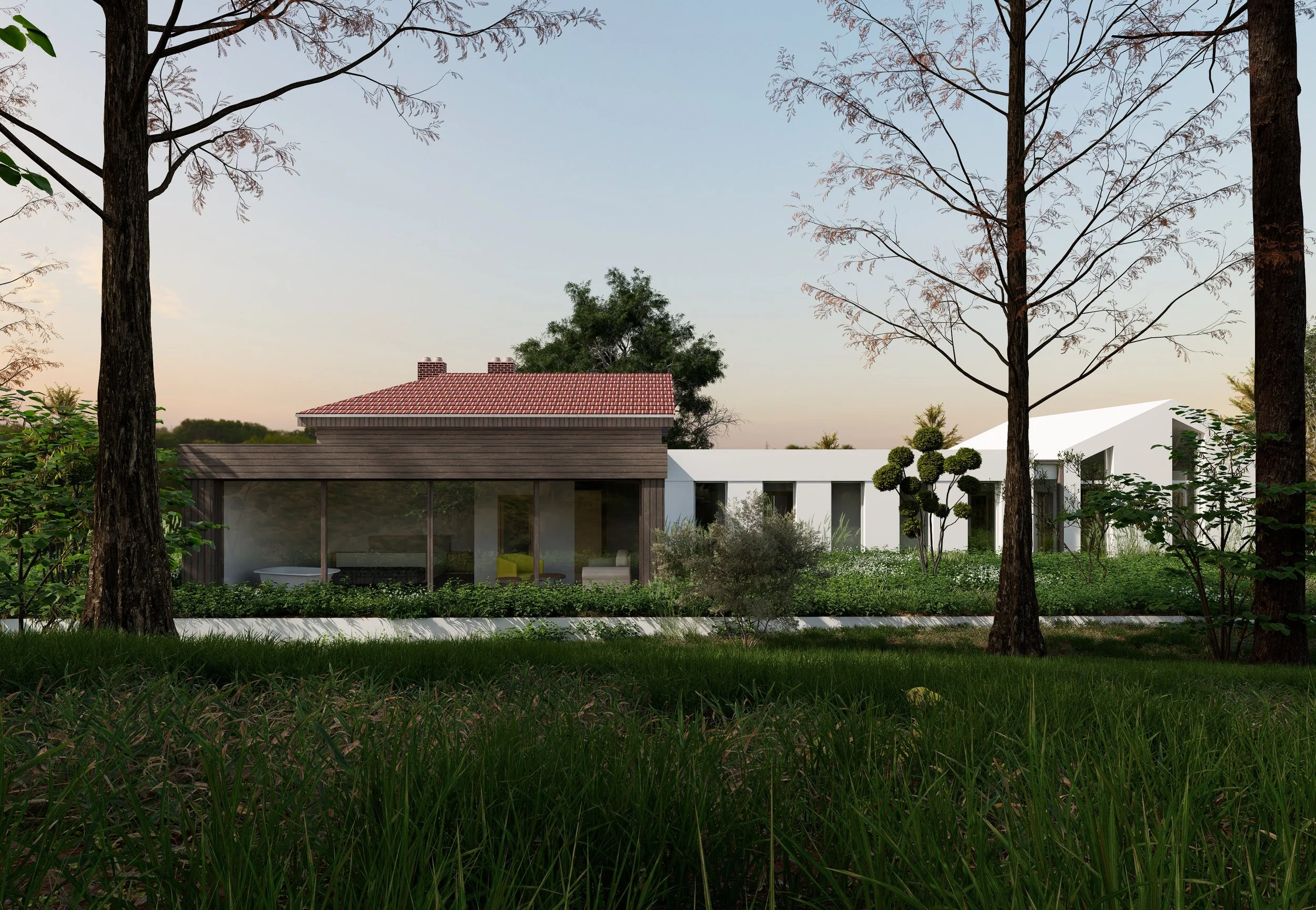 Ключов елемент в проекта е адаптацията на част от съществуващия рибарник и трансформирането му във вътрешен басейн, към който се предвижда зона за релакс и спа пространство. Новите функции са допълнени от проектиране на ресторант, обслужващ комплекса, както и разширение на капацитета за настаняване с още три стаи. Проектът се намира в начален, концептуален етап и предстои последващо детайлно развитие както на архитектурата, така и на интериорните пространства.