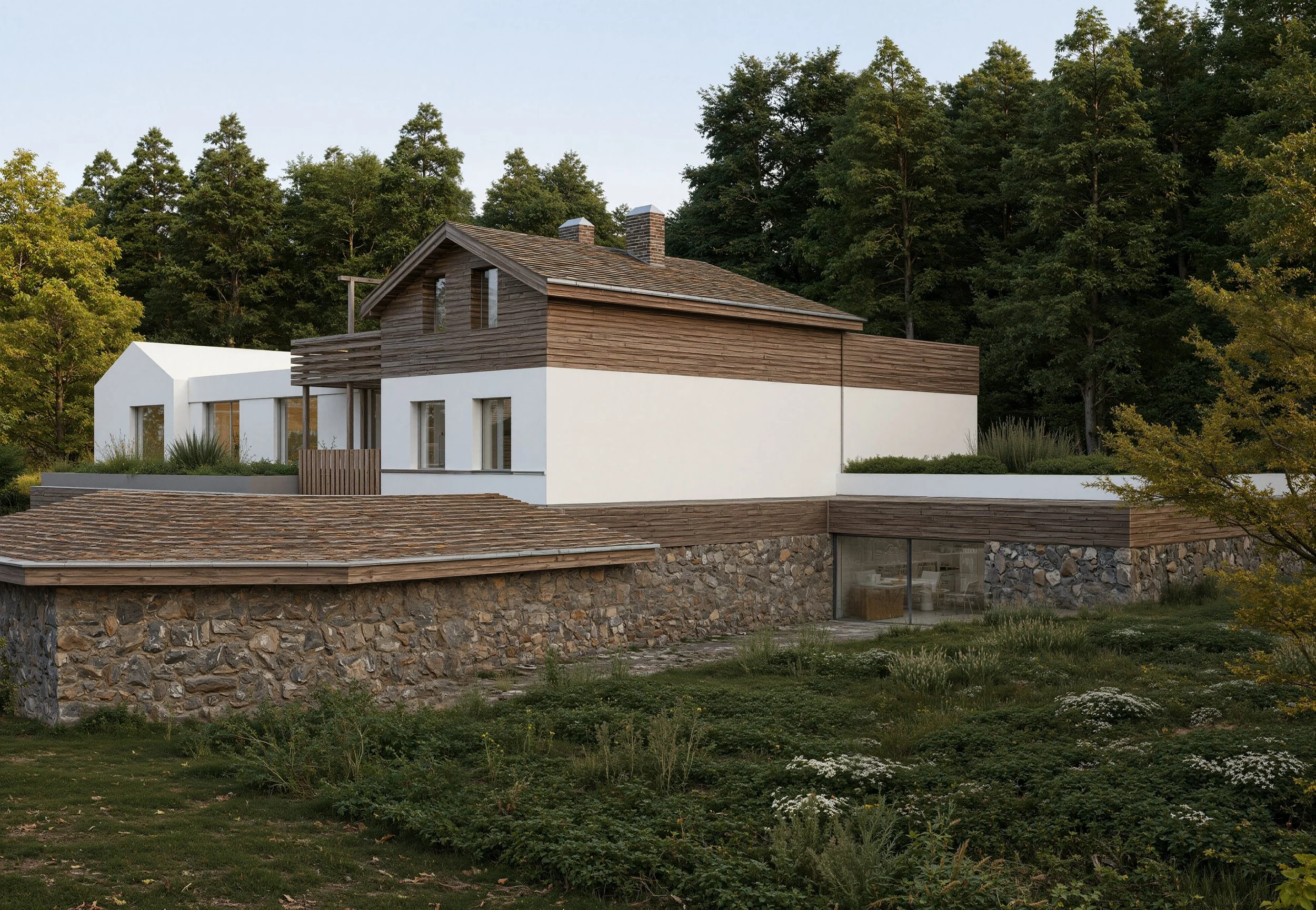 Основното предизвикателство е постигането на хармоничен диалог между новото и съществуващото застрояване – създаване на стилна, съвременна и функционална архитектура, която естествено се вписва в контекста и атмосферата на мястото. Търсено е усещане за „спа в гората“ – пространство, което съчетава уют, естествени материали, приглушена естетика и силна връзка с природната среда. Концепцията залага на спокойна, топла и автентична среда, която да създава усещане за уединение, релакс и уникално преживяване, характерно единствено за това място.